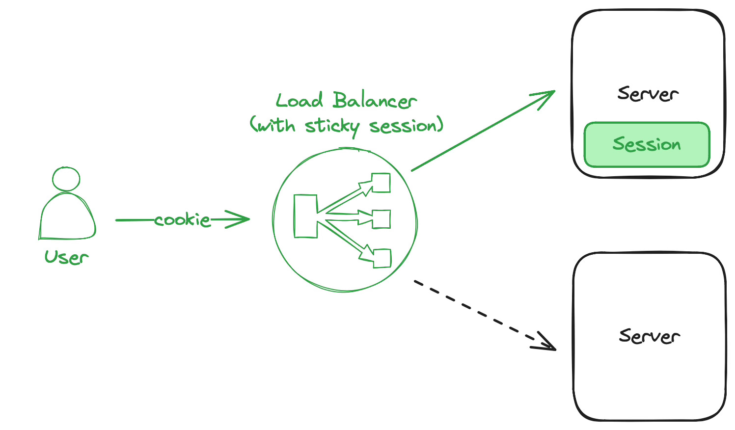 Sticky sessions are an easy way to bootstrap the login flow and can be attractive for smaller startups or scenarios with consistent throughput. This approach does not require configuring or paying for extra storage, since sessions are kept in memory on the server. The implementation is straightforward since most load balancers support request routing based on cookies out of the box. Similarly common authentication frameworks support storage of sessions in memory.