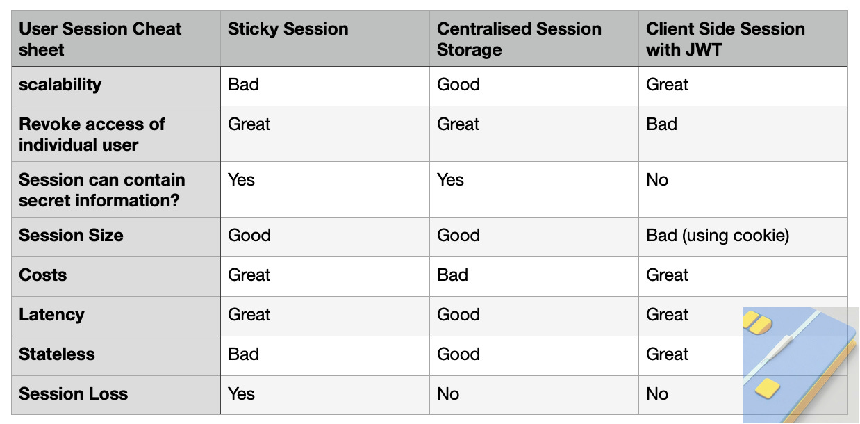 When I started working in the Identity and Access Management (IAM) domain I was looking for a quick overview of common user sessions architectures, but didn't find anything good. Hence I have summarised my learnings for you into this cheat sheet. I hope it will help you choose a suitable architecture for your specific context.