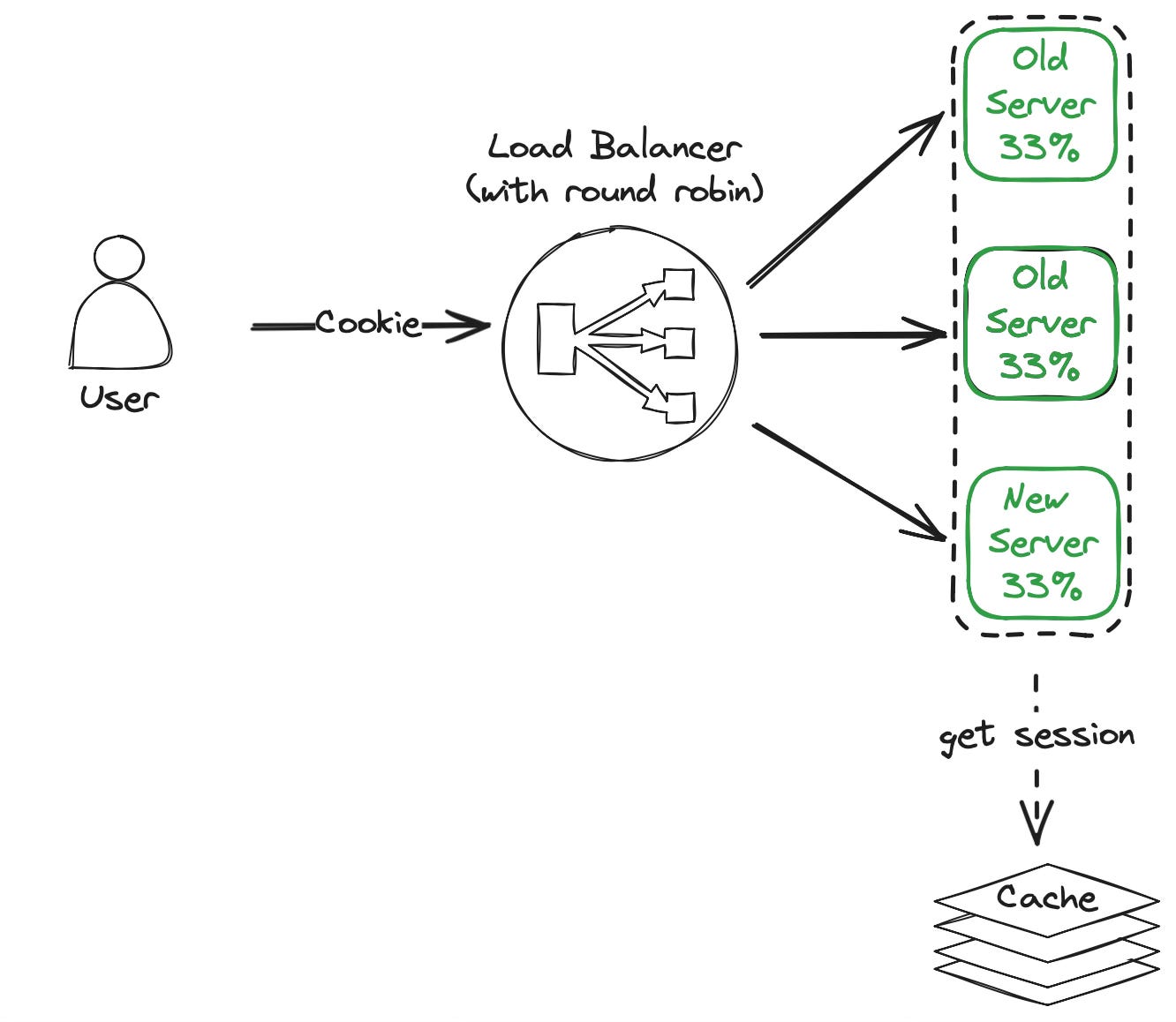 Due to a growing user base and the need to scale our application, we had to remove sticky sessions. By introducing a centralized storage the servers don’t have to keep the session in memory, but instead query the cache for the user session based on the identifier in the cookie. Common session storages are low latency caches like Redis and Memcached. The cache should be set up in a highly available configuration to avoid creating a single point of failure in the architecture.
